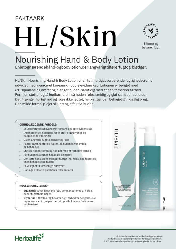 HL/Skin Nærende hånd- og bodylotion. Forkæl din hud med denne lækre hurtigabsorberende creme, der giver din hud det den har gavn af. Denne lotion har en formel der er understøttet af avanceret koreansk videnskab.